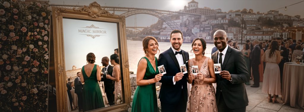 O Porto é uma das cidades com maior procura de animação fotográfica para eventos em Portugal. Casamentos na Ribeira, eventos corporativos em Matosinhos, festas de aniversário em Gaia — a procura por espelho mágico no Porto e arredores cresce a cada ano.