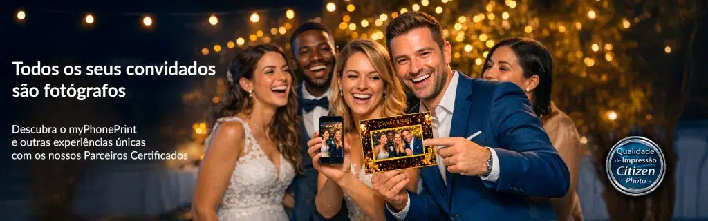 💎 Qualidade Citizen Photo Não deixe as memórias desaparecerem. Os nossos parceiros utilizam impressoras profissionais Citizen Photo (marca que representamos oficialmente). Garanta fotos com cores vibrantes, à prova de água e que duram uma vida inteira.